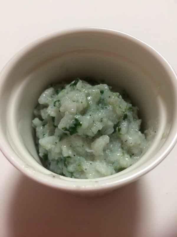 離乳食8ヶ月 ほうれん草としらすのおかゆ レシピ 作り方 By Bondibeach 楽天レシピ